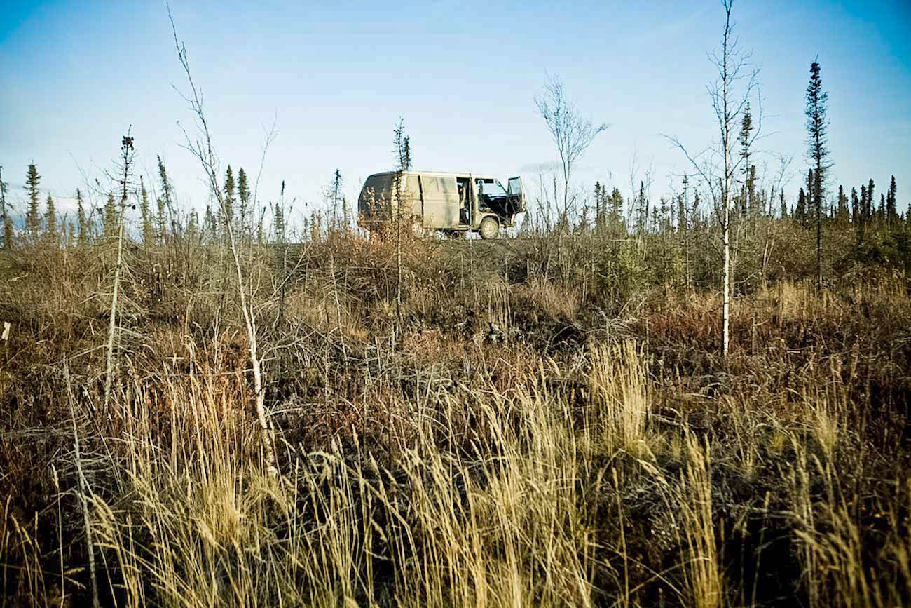 These photographs represent in part a journey taken from Vancouver, BC to Inuvik, the northernmost town in Eastern Canada accessible without the use of ice roads. In a 1983 VW air-cooled Vanagon named Lola, with compadres Julian and Nacho, we traversed approximately 5,000 km in 2 1/2 months of camping, and we only broke down 17 times.